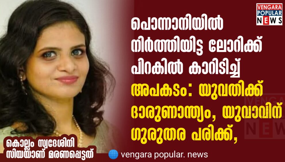 # Tags പൊന്നാനിയിൽ നിർത്തിയിട്ട ലോറിക്ക് പിറകിൽ കാറിടിച്ച് അപകടം: യുവതിക്ക് ദാരുണാന്ത്യം, യുവാവിന് ഗുരുതര പരിക്ക് Admin 1 / 7 months 0 1 min read