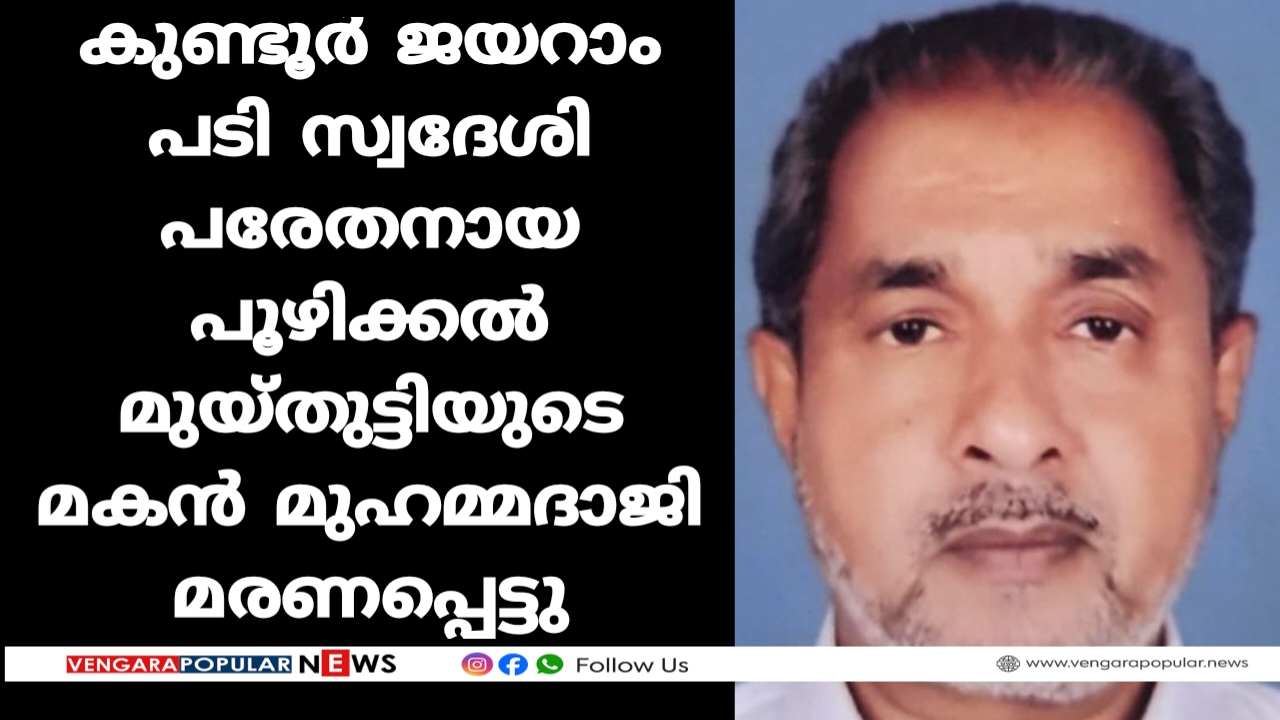 കുണ്ടൂർ ജയറാം പടി സ്വദേശി പരേതനായ പൂഴിക്കൽ മുയ്തുട്ടിയുടെ മകൻ മുഹമ്മദാജി മരണപ്പെട്ടു. മക്കൾ: ഫൈസൽ , യാസർ (ഇരുവരും ചെന്നൈ)ആയിഷാബി മരുമക്കൾ : ശംസുദ്ധീൻ (
